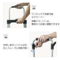 30日以内返金/新品交換対応 | タイヤの改良 大型ゴムタイヤになりました! 抜群の安定性+操作性と驚きの静音さを実現! このキャリーカートの重量は3.8kgぐらいですが、平地で100kgの貨物を簡単に運ぶことができます。 軽量でコンパクトな折りたたみ式のキャリーカートの為、持ち運べて便利&収納にも困らない。 使う人の身長に合わせて2段階調整&旅行や防災などにも使えるコンパクトなキャリーカート |