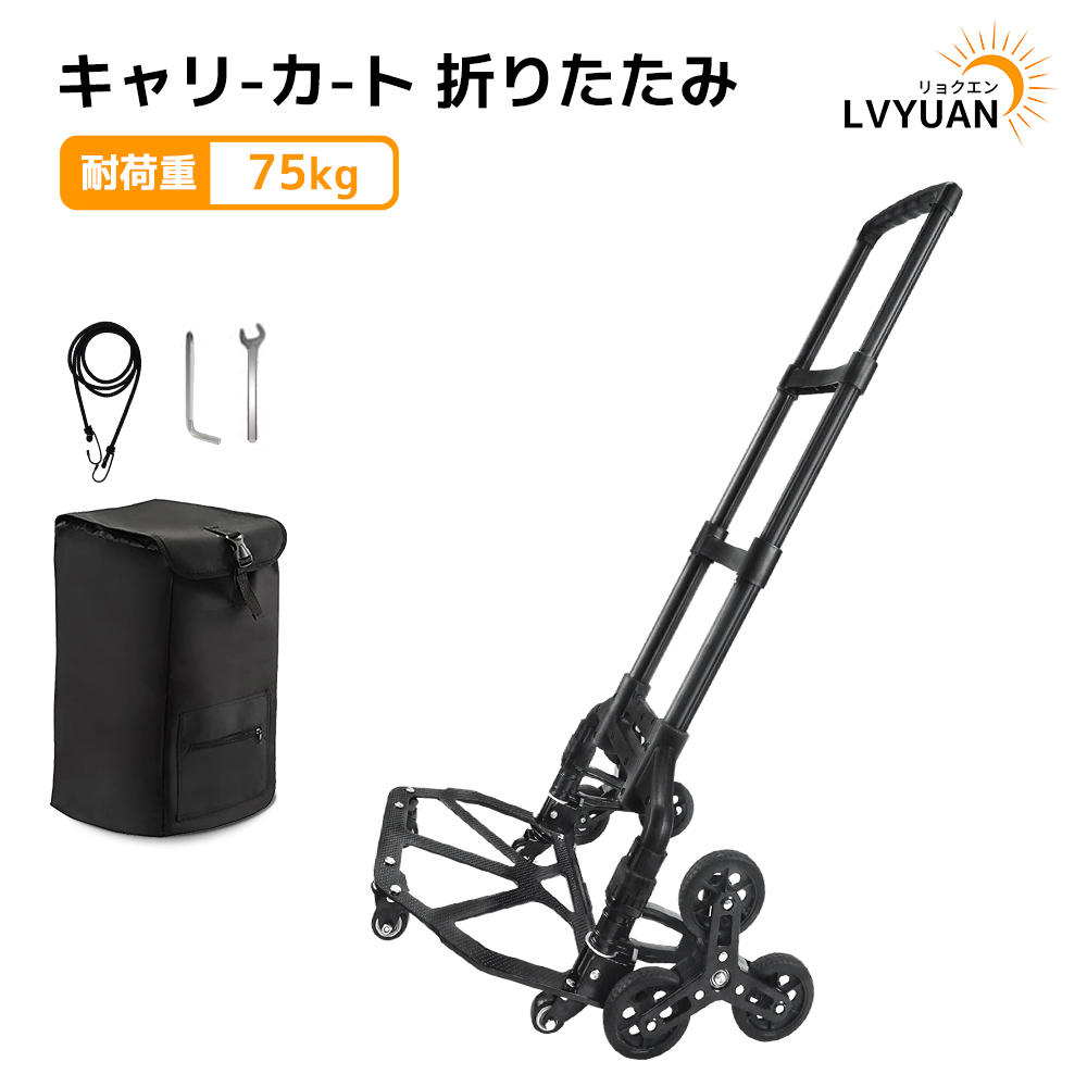 | 軽量&耐荷重75kg | この階段キャリーカートの重量は4.2kgぐらいですが、平地で75kg、段差昇降時で35kgの貨物を簡単に運ぶことができます、日常生活水購入時、(駐車上から家までの運搬など)、釣り、引っ越し、旅行、運動会、バーべーキュー、キャンプなどのアウトドアシーンでも大活躍間違いなし。 |