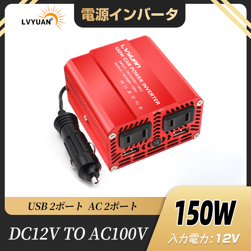 | 仕様 | 型番:150W 仕様 定格出力:150W 入力電圧:DC12V(11-15V) 出力電圧:100V±5V 出力周波数 : 60Hz ひずみ率:<3% 効率:>88% 電圧計 :入力電圧、出力電圧 低バッテリアラーム:DC10V±0.5V 低バッテリシャットダウン:DC 9V±0.5V 高バッテリシャットダウン:DC 15.5V 稼働温度:0〜45℃ 高温保護>75℃ 商品重量:0.27kg 製品サイズ:90mm*80mm*50mm 無負荷電流:0.3 保護機能:入力低電圧警報・低電圧の遮断・過温度遮断・過負荷遮断・ 短絡遮断 ・入力過電圧保護・入力逆接続保護機能などの保護機能が搭載されております。また、本体内部に冷却ファンが搭載されており、使用中の設備過熱を防止します。(起動したら回転開始) ※附属品: 1xシガーソケット 日本語取扱説明書 この製品保証期間:1年!!【30日間】返金/新品交換対応!! | 【商品説明】 | 1:【 おすすめポイント 】本体はアルミ製なので頑丈で見た目も良いです。 内蔵ヒューズがあり、冷却ファンと使用状況を示すLEDライトも付いていますので安心してご使用いただけます。小型で軽量!しかもパワー充分なカーインバーター。車内のシガーソケットに接続するだけでカンタンに使える車載インバーターは充電器としても防災グッズとしても注目のアイテムです。 2:【 車中泊にも 】地震や災害時の緊急防災グッズとしても活躍する 車載インバーター 。ヒューズ内蔵で車内用充電器として車内泊の際に必要になる端末や小型家電の充電ができるカー用品。車内清掃するときにも シガーソケット からコンセントやUSBが接続できる機器であれば繋いで使用できる便利グッズ。 3:【 注意 】ご使用になる機器の定額出力は150W以内であることをご確認の上シガーライタを使用してください。車のシガーソケットのヒューズは150W以上で切れる場合がございます。 | 安心の為自宅と車に必ずキャンプと災害におすすめのインバーターおきましょう | 車の中で端末や小型家電が充電できる小型インバーター。アプリなどの設定要らずで接続してすぐに使える簡単設計。 手のひらサイズ約11cm 軽量タイプ450gコード長50cm。 車内のシガーソケットに接続するだけでカンタンに使える車載インバーターは充電器としても防災グッズとしても注目のアイテムです。 スマホ スマートフォン タブレット iPadなどのモバイル端末機 ノートPC デジタルビデオなどの充電が可能。 (接続機器の電圧・電力・接続環境をご確認ください) 本体はスマホより小さいサイズ、コロンと丸みを帯びたモダンデザイン。 アルミ製のレッドを採用。 コード長も車内で使い勝手のいい長さを実現しました。 ※本体が熱くなり過ぎた場合使用を一時中断するようにして下さい。※本機とつなげる機器の消費電力を確認してからご使用ください。 | 弊社の製品に関するご質問等がございましたら、お気軽にお問い合わせください。 ※土・日曜日及び祝日の場合は、返事が遅くなる場合がありますので、是非ご了承くださいませ |