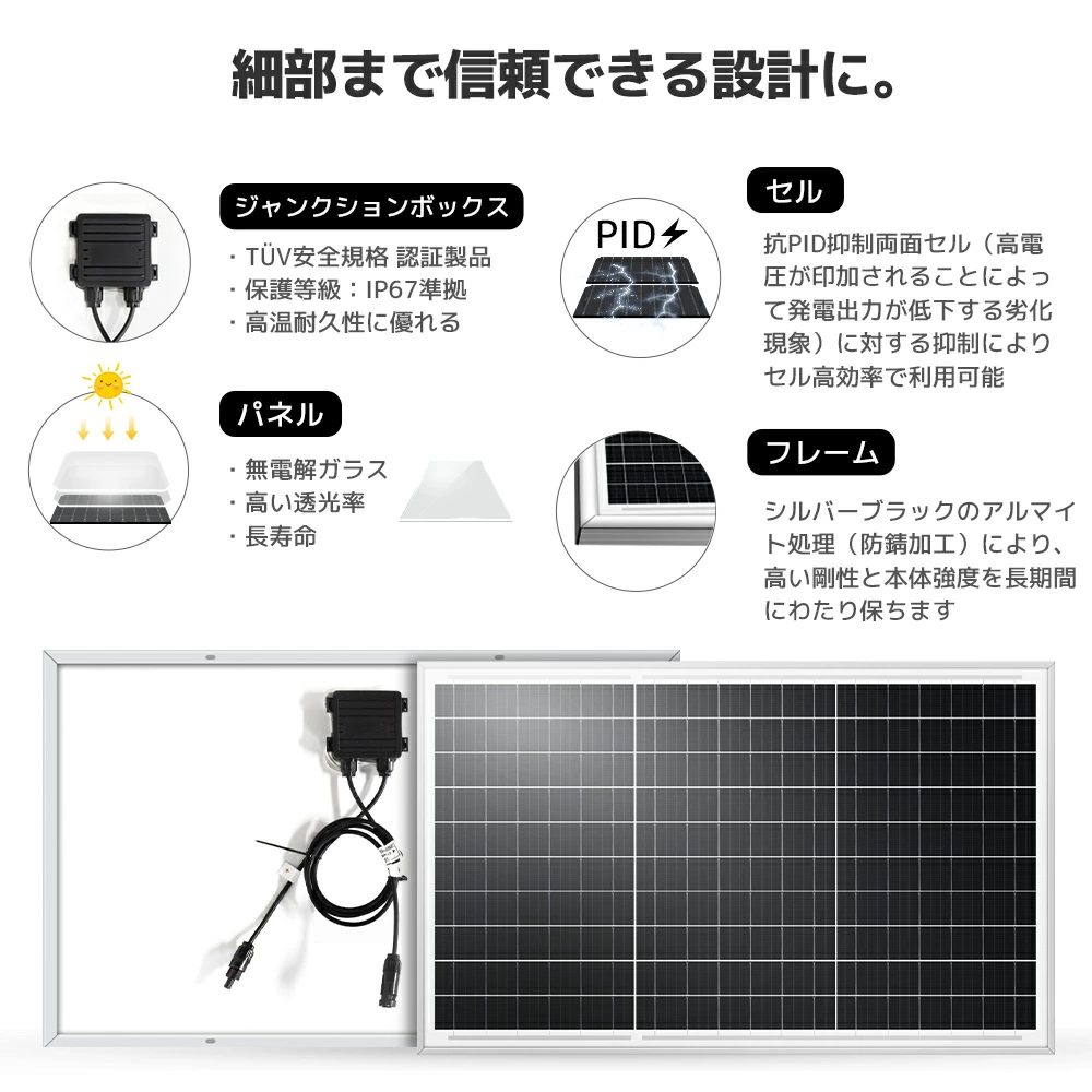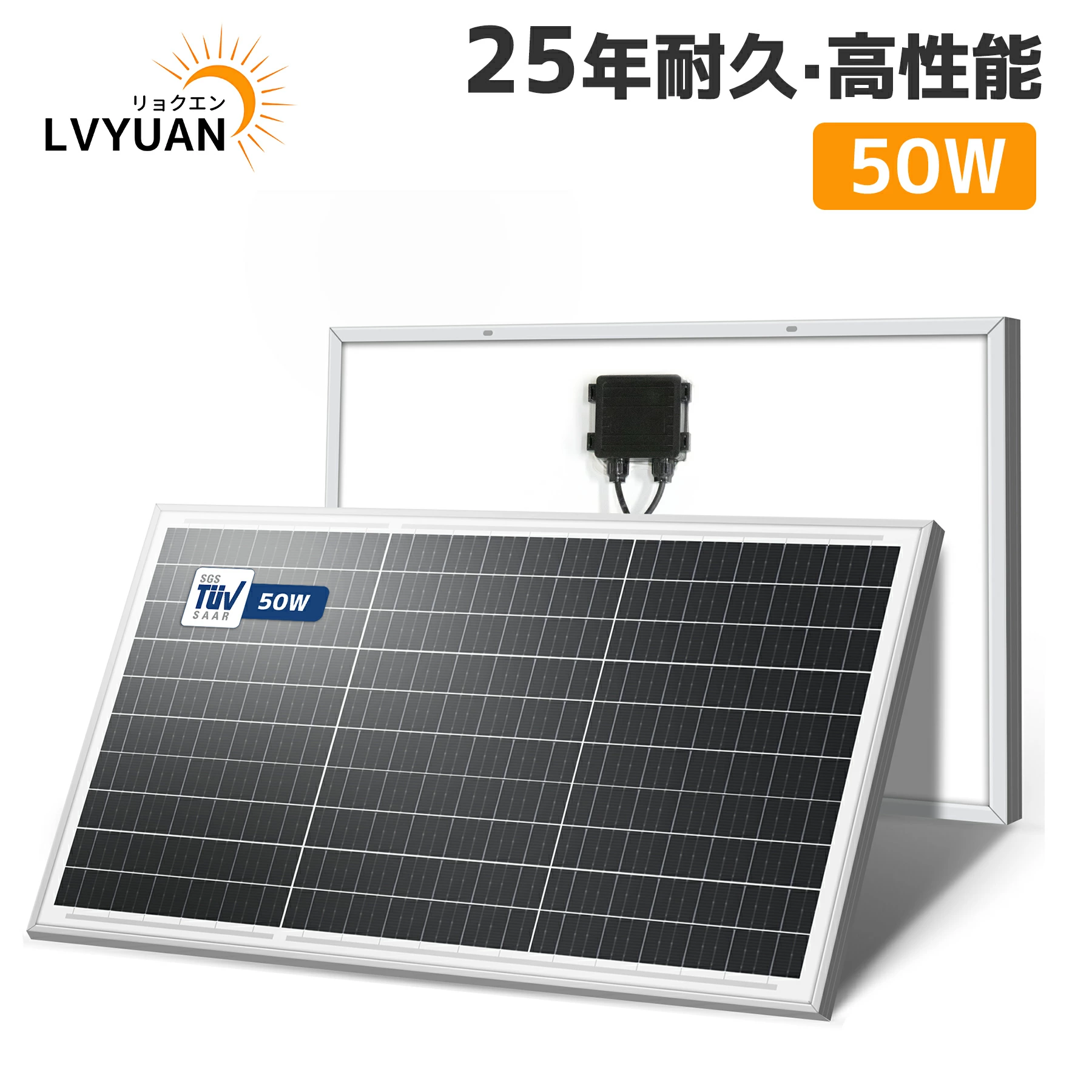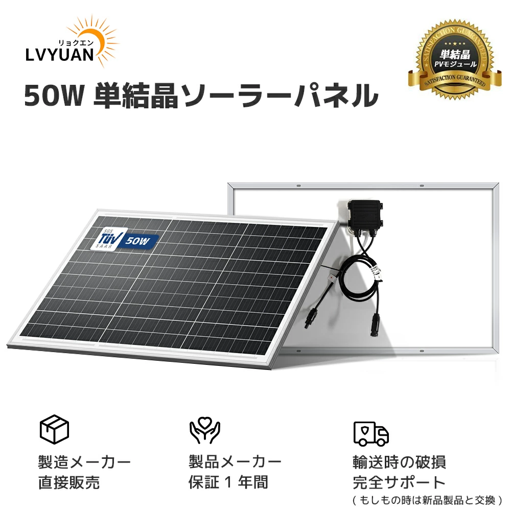 LVYUAN 50W 太陽光パネル ソーラーパネル IEC基準 TUV規格品 PERC 高性能 単結晶 次世代型 太陽光チャージ 超高効率 省エネ 小型 車 船舶 屋根 ベランダー
