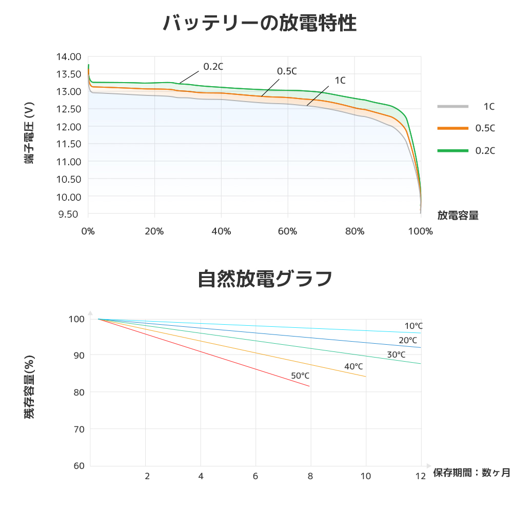 | 高品質 | 徹底した材料の選定と工程管理によって実現した最新の車載用バッテリーセルを使用しており、3000回以上のサイクル寿命(80%のDOD)、100Aの連続充電電流、120Aの連続放電電流、広範囲の動作温度範囲を確保し、優れた耐久性を誇ります。 |