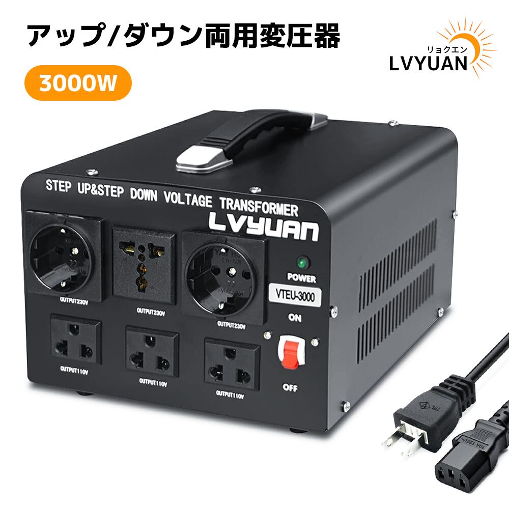 | この製品でできること | 1:世界対応 日本の電気製品を海外で、海外用機器を日本国内で使用することが可能です。 2:定格容量3000Wで1時間定格使用、2000W連続使用ワット数での使用をお勧めします。 3:安全の温度制御保護(サーモスタット)や短絡や電力過剰を防ぐ 4:保護機能電圧ドロップの解消(電圧降下による家庭電化製品の焼損、機能低下を防ぐ 5:変圧器の容量は、使用する電化製品のモーターなどの起動電流を考慮して定格電流の2倍程度の製品選択でのご利用をお願いします。 |