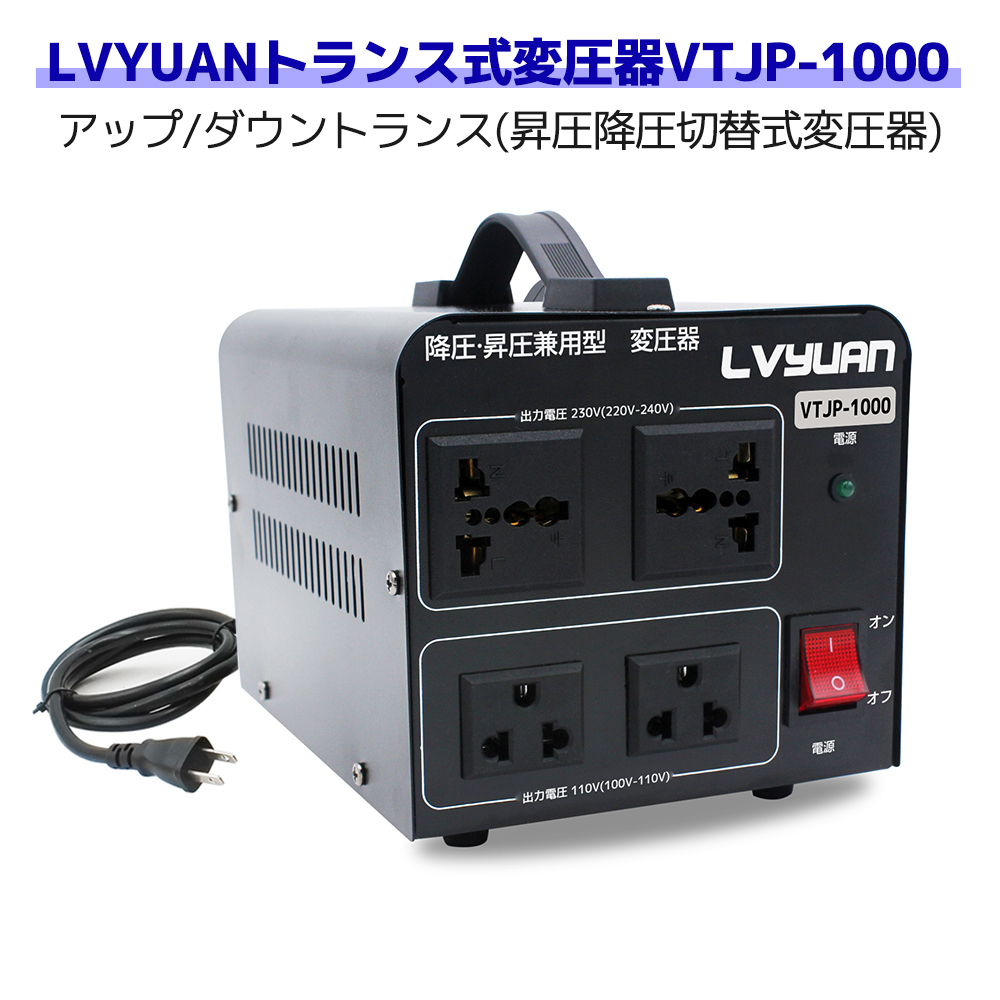| 【仕様】 | ◆モデル:dt-1000va ◆定格入力電圧:AC100V ~ 110V / 220V ~ 240V 自由切換 ◆周波数:50/60Hz ◆定格出力電圧:AC100V ~ 110V / 220V ~ 240V 自由切換 ◆定格容量 :1000VA ◆効率:≧90% ◆保護装置:過負荷及び出力短格時にヒューズの溶断による ◆電流(A):10A ◆外形寸法、サイズ:196×150×132 mm ◆電源コード:1.5m ◆重量:4.6kg ◆静音、省エネタイプ ◆製品保証:一年間(30日以内返金/新品交換対応/特定商取引に関する法律に準ずる) ◆日本国内で購入した製品の保証は、日本国内に限定します。 ◆機器組込み用途を含め、お客様にて弊社製品を日本国外に持ち出される場合でも保証は日本国内での対応とします。 | 【この製品でできること】 | 1:世界対応 日本の電気製品を海外で、海外用機器を日本国内で使用することが可能です。 2:定格容量1000Wで1時間定格使用、800W連続使用ワット数での使用をお勧めします。 3:安全の温度制御保護(サーモスタット)や短絡や電力過剰を防ぐ 4:保護機能電圧ドロップの解消(電圧降下による家庭電化製品の焼損、機能低下を防ぐ 5:変圧器の容量は、使用する電化製品のモーターなどの起動電流を考慮して定格電流の2倍程度の製品選択でのご利用をお願いします。 | 【特徴】 | 1:入力電圧切り替えと出力電圧の切り替えスイッチがあります。 2:メーカー直販です。 3:複数のソケットから同時に出力します。(定格合計容量をお守りください) 4:昇圧・降圧どちらも可能、フロントパネルの出力電圧切換スイッチで使用したい電圧に変更できます。 5:サーマルプロテクタ(過熱防止装置)自動復帰ヒューズ内蔵の安心安全設計 6:サーキットプロテクタ(過電流防止装置) 国内向け100V仕様のデスクトップPCやOA機器、高機能家電品、医療機器、ゲーム機などの精密機器に適しています。 世界各国の不安定な電源電圧でも心配なく、100〜240Vの幅広い入力電圧範囲で日本の電化製品が使用できます。 1000W以内であれば電源タップなどを利用して複数の電気製品をつなぎ、ご利用いただけます。 日本の家電を、海外赴任・留学などの長期滞在の他、海外の医療機器や計測機器の使用や製品デモ、撮影・編集などの業務用にもご使用いただけます。 | 【適切な電源変圧器を選択】 | 変圧器には電圧損失があるため、使用電力より余裕のあるワット数の変圧器を選択します。 a:モーターを使用しない電化製品の場合は、定格容量の80%を目安にご使用ください。 b:モーターを使用する電化製品の場合は、定格容量の50%を目安にご使用ください。 ※モーター装備家電などは一時的に機器掲示されている電圧以上に使用電圧が必要とります。 安心・安全性を確保するために、使用する電力は800wまで、購入され予定の変圧器は60%を目安にご検討ください。(それ以上の電力をご利用の場合)余裕のあるW数の変圧器をご利用ください。 | 【変圧器(トランス)とは?】 | 日本とは違う海外家電製品を、日本国内で使用する場合に必要となるのがトランス(変圧器) です。トランスは電圧を変更するためのもので、使用したい電化製品とコンセントの間にこれを繋ぐことで、日本の電源で海外家電を AC100V で使用することが可能です。また、背後にあるスイッチで逆に海外で日本家電を使用することも可能です。 また、この変圧器はトランス式ですべての電気機器に使えますが、容量が大きいものはトランス自体も大きく重くなりますので、使用したい機器の種類や消費電力によって選ぶ必要があります。 また、この変圧器は、海外の電源プラグをそのまま使用できるユニバーサルモデルで、プラグの形状の変換もなく安心してご利用いただけます。 | 弊社の製品に関するご質問等がございましたら、お気軽にお問い合わせください。 ※土・日曜日及び祝日の場合は、返事が遅くなる場合がありますので、是非ご了承くださいませ |
