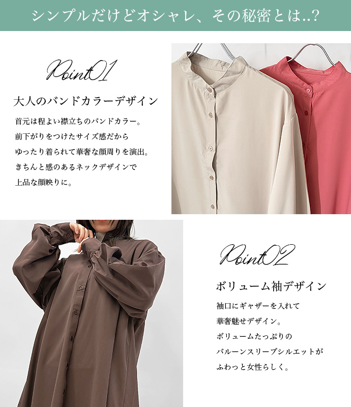| しっとり滑らかなピーチスキン生地 微光沢あり 伸縮性なし 裏地なし ポケットなし 透け感なし バルーンスリーブ フレアシルエット 前開き(前ボタン) バックギャザーデザイン |