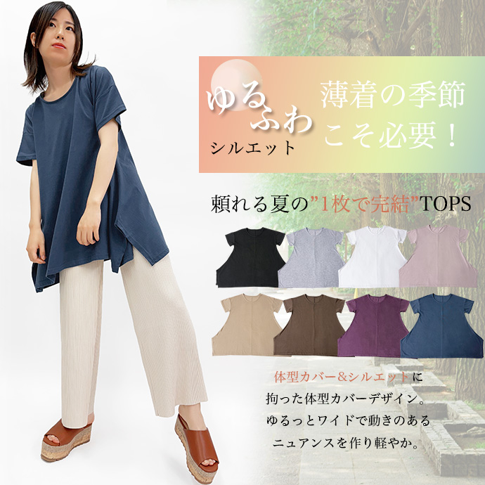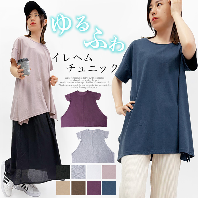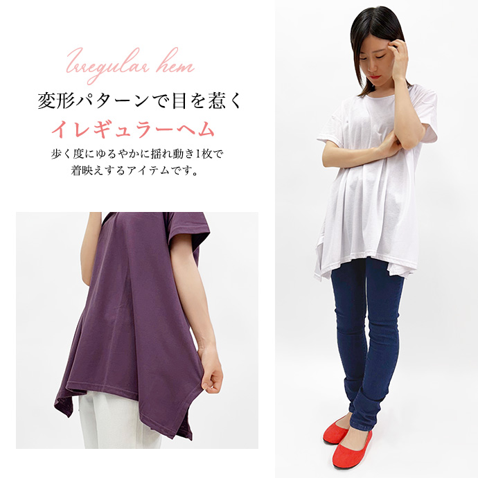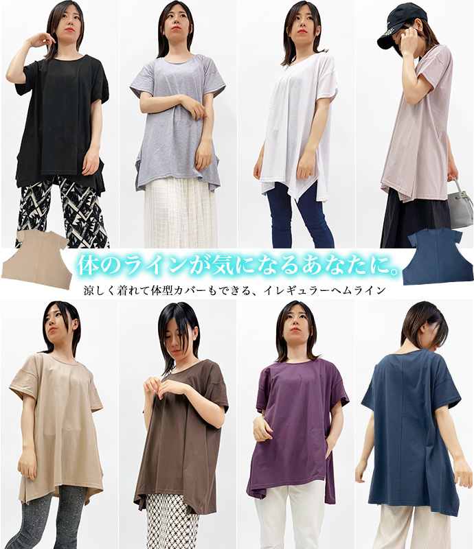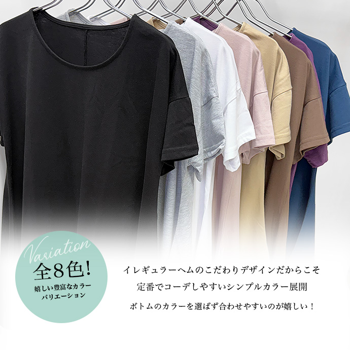 | 淡色系は透け感あり 伸縮性あり イレギュラーヘム(変形パターン) ドロップショルダー ゆったりシルエット 滑らかな肌触り ポケットなし |