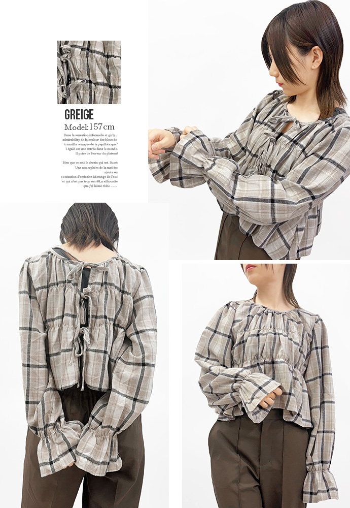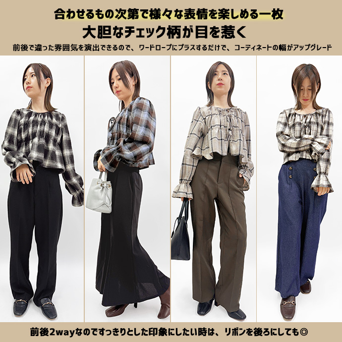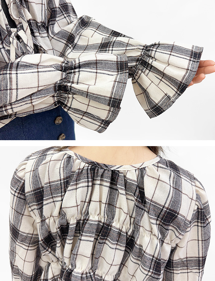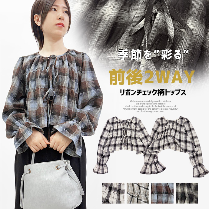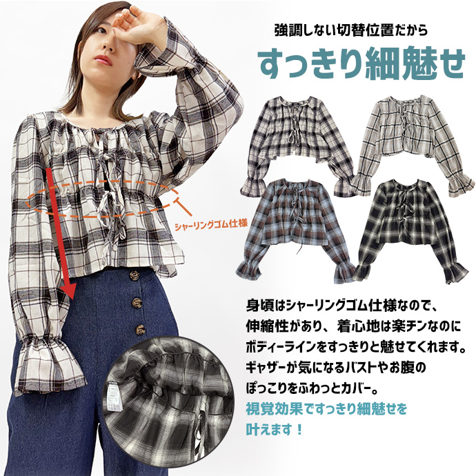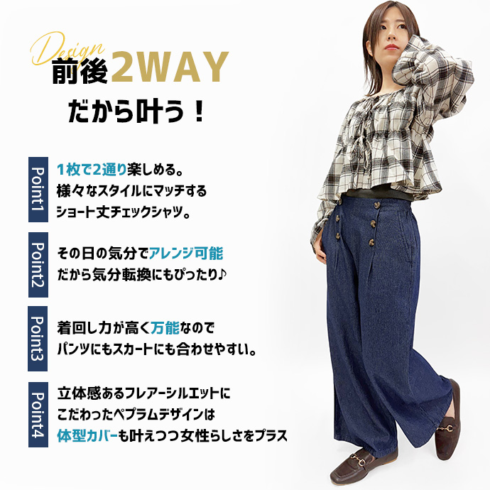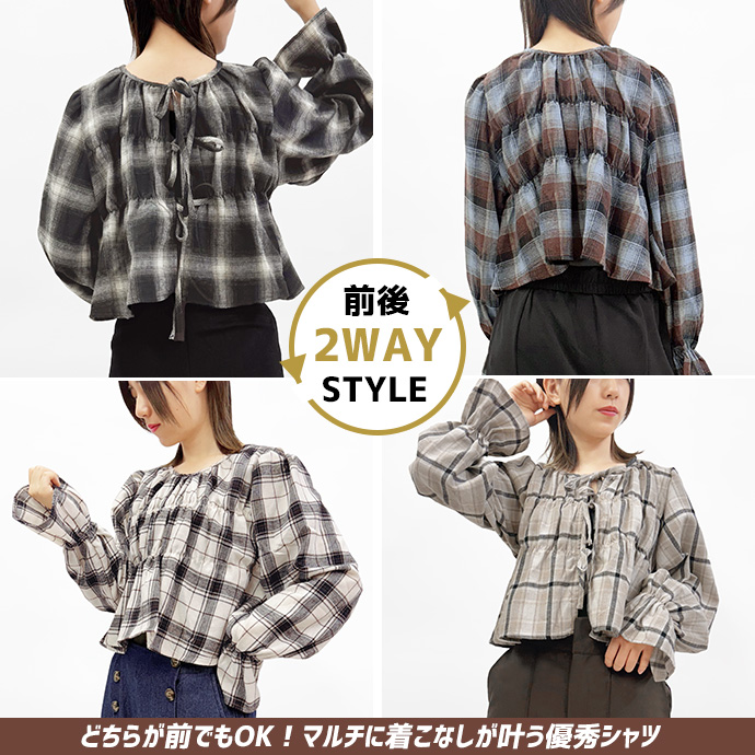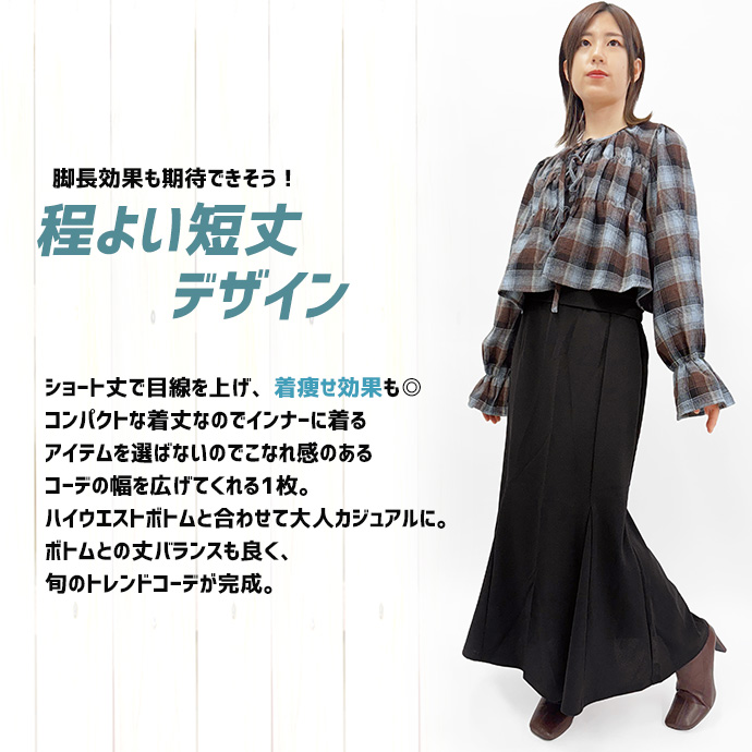 | 前後2wayチェック柄ショート丈長袖シャツ |