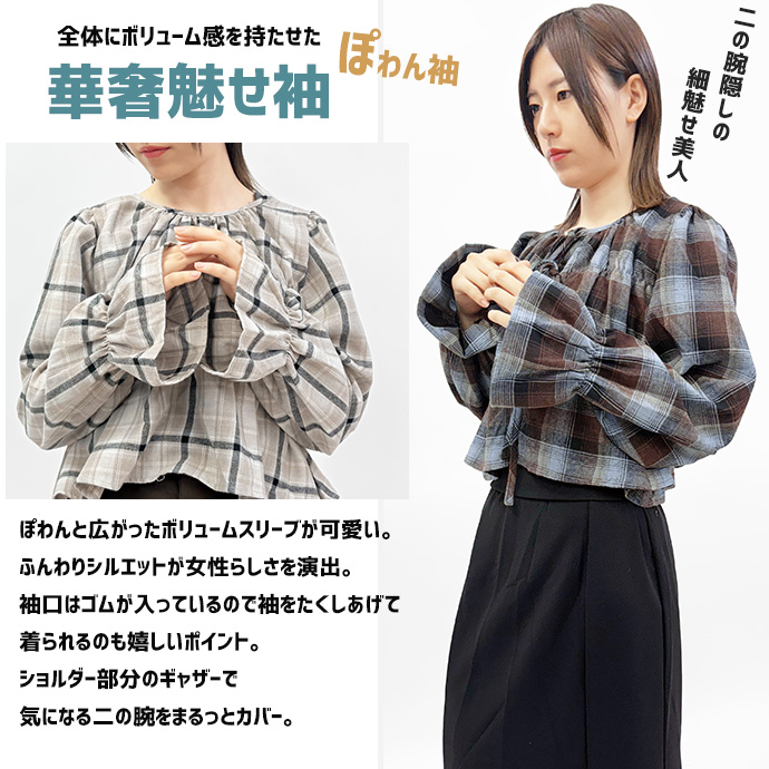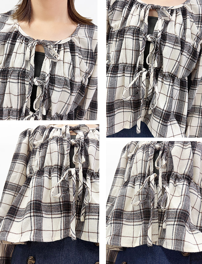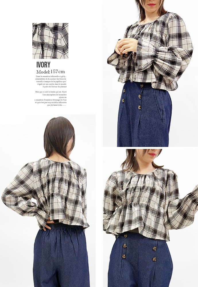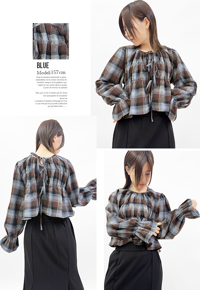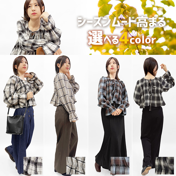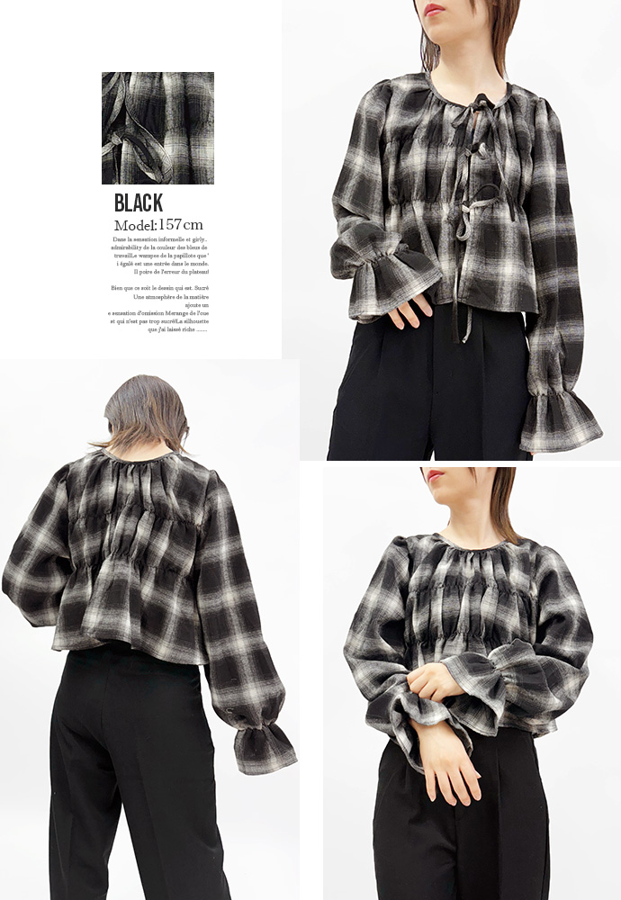 | 前後2wayチェック柄ショート丈長袖シャツ |