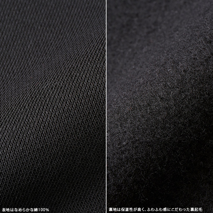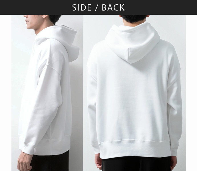 | 裏起毛 10.0オンス フード二重 フード後ろ中心部分に縫い合わせあり 伸縮性なし 透け感なし |