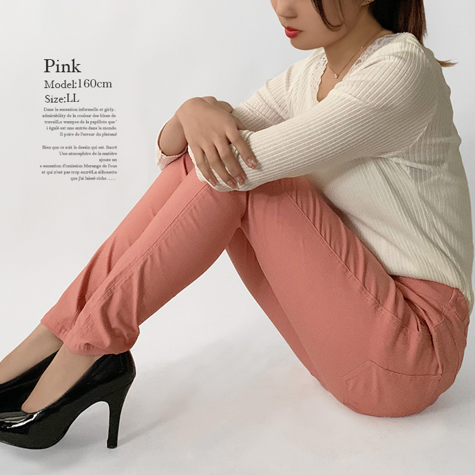| 伸縮性あり フロントポケットはフェイク バックポケットはリアル ウエストバックゴム スキニー ホワイトは透け感あり 裏地なし |