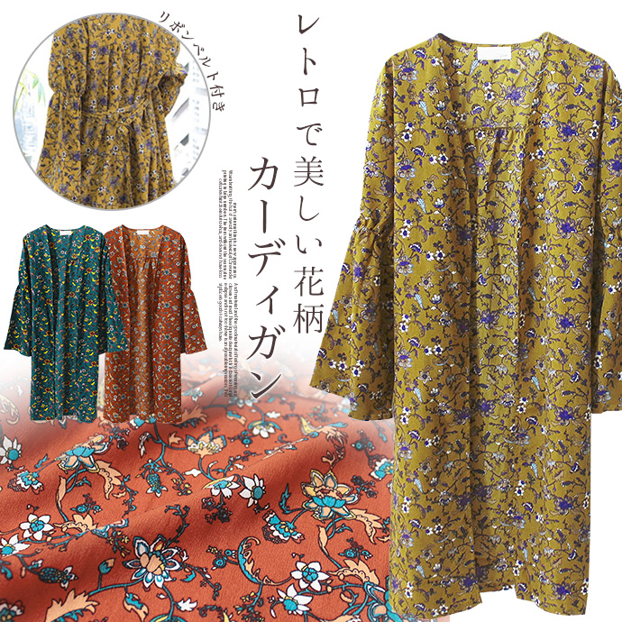 | シャリ感のあるシフォン生地 ペイズリーの花柄 ウエストリボン(取り外し可能) ゴムギャザーになりフレアの袖口(フレアスリーブ ) 伸縮性なし 透け感あり |