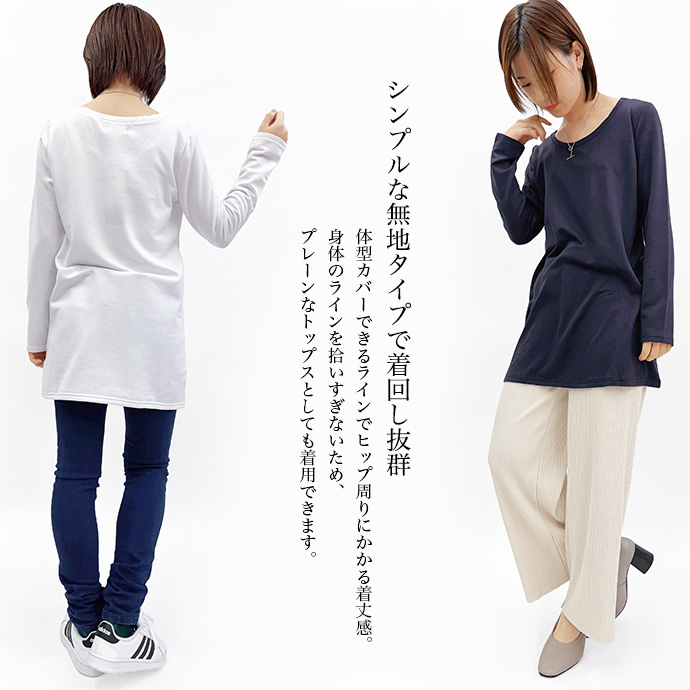 | 裏起毛無地チュニック丈T |