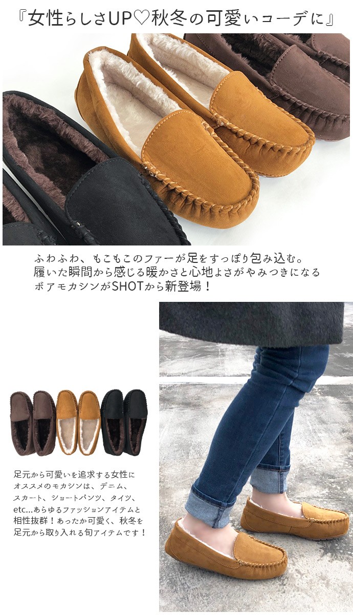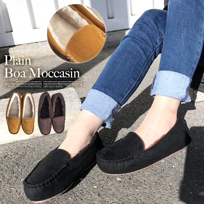 タイムセール モカシン シューズ 靴 レディース ボアモカシン ぺたんこ 無地 プレーン ボア あったか 防寒 楽チン
