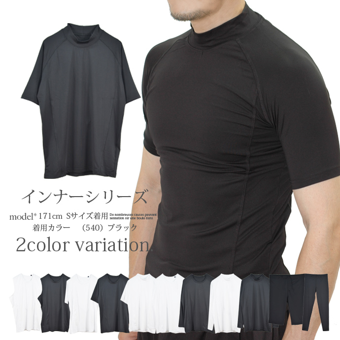 インナー ノースリーブ Tシャツ パンツ ハーフパンツ メンズ 吸汗速乾 UVカット ストレッチ 半袖 長袖 (メ) ロング クルーネック ハイネック