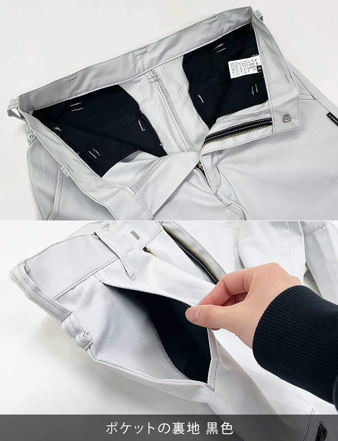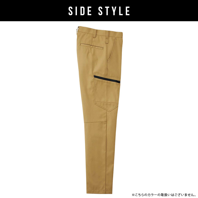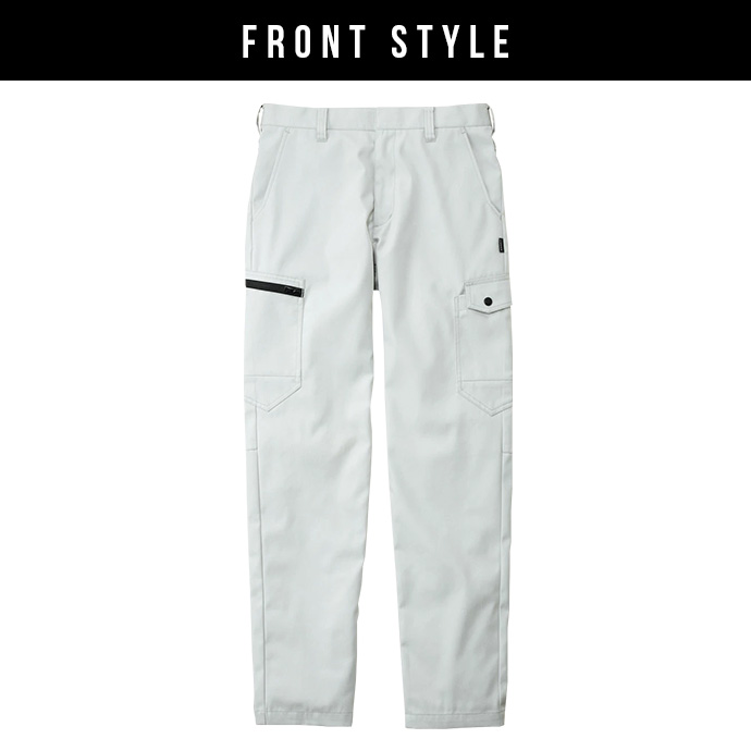 | 若干厚手 ウエスト左右ダブルループ 右カーゴポケットファスナー付き 左カーゴポケットフラップ・ペンホール付き 後ろ膝裏切り替え 裏地付き 静電気防止 帯電防止 |