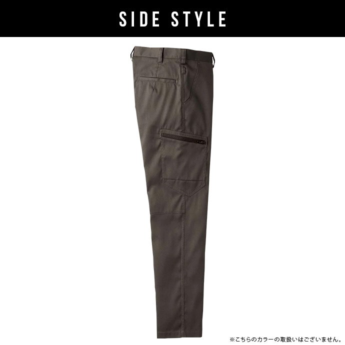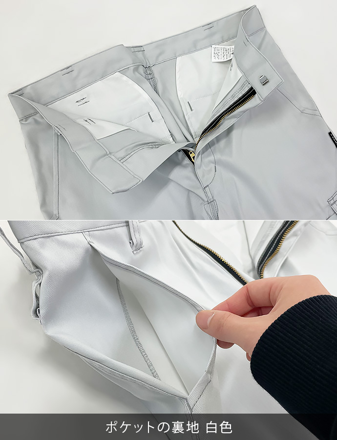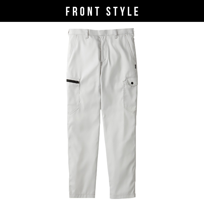 | 薄手 ウエスト左右ダブルループ 右カーゴポケットファスナー付き 左カーゴポケットフラップ・ペンホール付き 後ろ膝裏切り替え 裏地付き 静電気防止 帯電防止 |