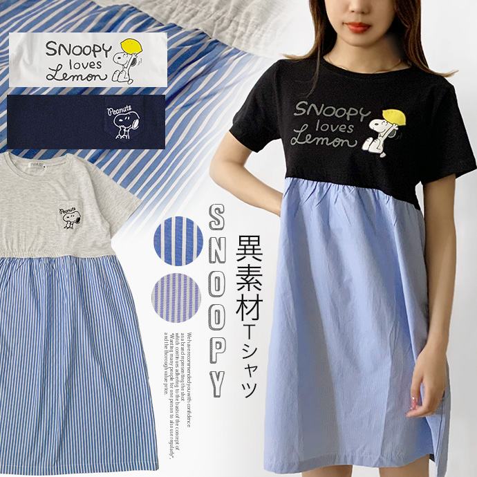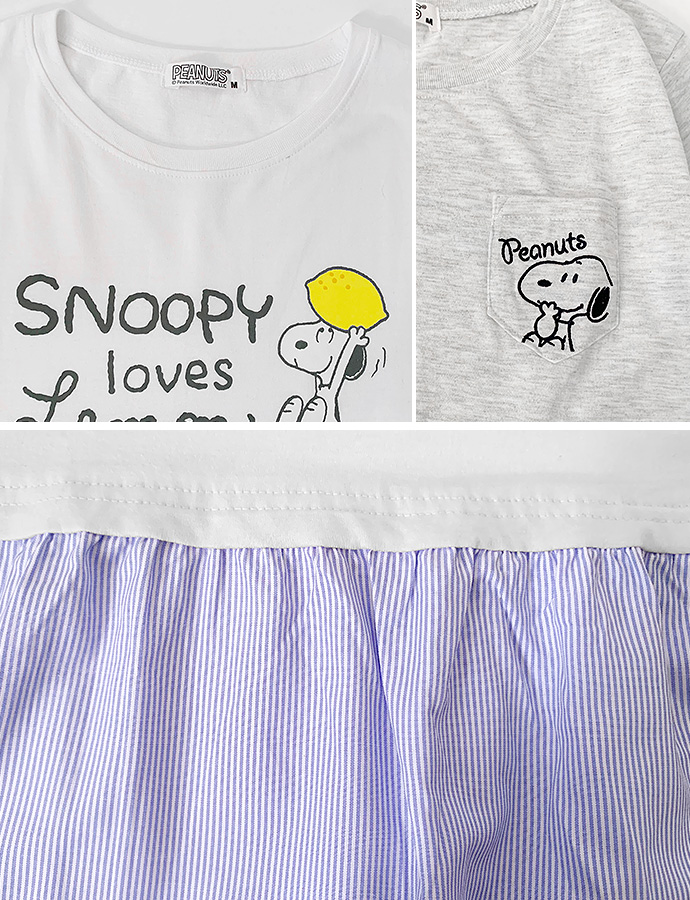 | グレーとネイビーには左胸にポケットあり ホワイトとグレーは透け感あり Tシャツ部分は伸縮性あり Tシャツ×ストライプ柄のシャツ(異素材) フロントにスムーピのプリントあり |