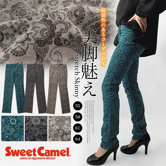 | 【Sweet Camel】ペイズリー柄コーデュロイスキニーパンツ |