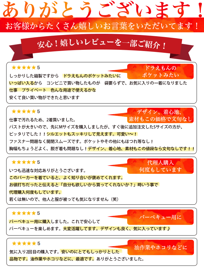 | 綿100%だから火に強い 大容量のフロントポケット ファスナー付ポケット フード、裾部分にスピンドル付き絞り紐 左袖にペン差しポケット 伸縮性なし 透け感なし |
