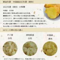 | 商品詳細 | 中国産生姜の特徴:中国産大生姜。果肉が黄色で根茎は肥大良好の近江生姜。繊維質が多く、辛味が強いのが黄金生姜の特徴。すりおろすと、鮮やかな黄色で冷奴などに乗せると映えます。さわやかな香りと清涼感のある辛味が特徴で、魚や肉の臭み消し、麺類や豆腐の薬味として日本人に最もなじみの深い香辛料です。 中華料理・日本料理・インドカレー・和食料理・居酒屋など様々なお店で使われています。 |