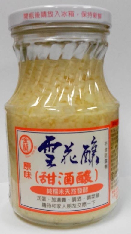 金蘭 純糯米 天然発酵原味 雪花醸・甜酒醸、500g瓶 X 12個(1ケース売り)送料無料!!(発酵もち米)、中華食材・台湾風味♪