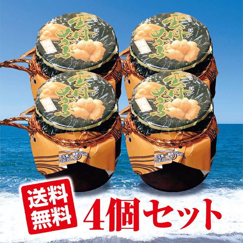 雲丹(ウニ)めかぶ4個セット 瓶詰め 送料無料 塩漬けウニと甘めに炊いたメカブ佃煮の二層構造の瓶詰め 人気商品 テレビで紹介され話題沸騰