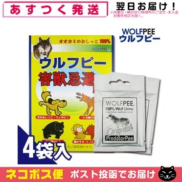 | 内容量:5gx4袋 成分:(内部)オオカミの尿100%をしみこませたシート、(外袋)アルミ 原産国:アメリカ(加工:日本) 区分:害獣忌避用品 使い方: 袋の下の切り込みの部分2ヶ所を切り取ってご使用下さい。雨水が袋の中に入らないように設置して下さい。ウルフピーの匂いで動物が寄り付かなくなります。 ※これは飲み物ではありません。 ※子供の手の届くところには保管しないで下さい。 ※誤飲した場合は直ちに専門の医師に相談して下さい。 ※衣服につくとシミになる場合があります。 ※高温になる場所、長時間直射日光の当たる場所には置かないで下さい。 ※ウルフピーは天敵を嫌がる動物の習性を利用して、対象となる動物を近づけにくくするものです。自然の動物の本能を利用した商品ですので、効果は動物個体差がございます。完璧な動物除けとしての保証はできませんので、他の動物除けの手段との併用をおすすめいたします。 ※中のシートは燃えるゴミです。お住まいの自治体の捨て方に従って捨てて下さい。 |