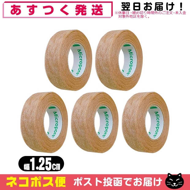 目立たない不織布タイプ 3M マイクロポア スキントーン サージカルテープ不織布 (全長9.1mx幅1.25cm) x5ロール 「ネコポス送料無料」