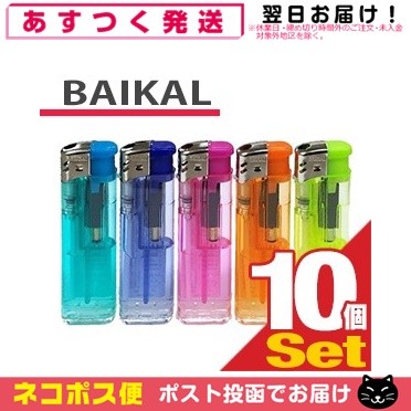 使い捨てライター BAIKAL(バイカル) プッシュ式電子ライター x10本 「ネコポス送料無料」