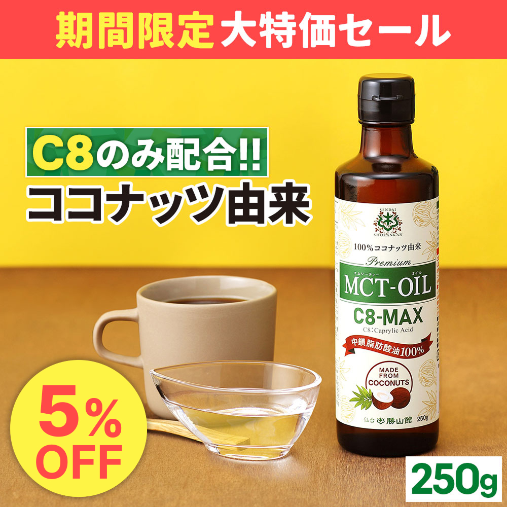 【23日1:59まで★大特価セール】MCTオイル 仙台勝山館 C8-MAX 250g | mct ココナッツ由来 希少なC8 (カプリル酸) のみ使用 ケトジェニック ダイエット