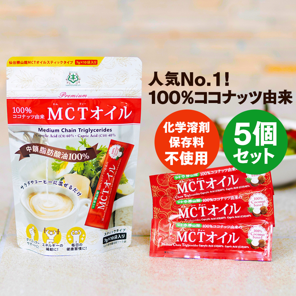 【お得なクーポンあり】MCTオイル 仙台勝山館 スティック 7g×10袋 5個 | 中鎖脂肪酸油 100% 無味無臭 ココナッツ由来 植物油 糖質ゼロ 健康食品