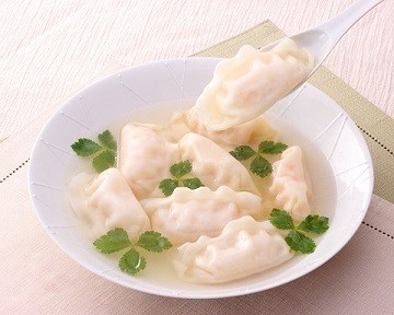 ぷりっぷりの乱切り海老をもっちり皮で包みました。添付品の「スープの素」で水餃子風に簡単に美味しくお召し上がりいただけます。お好みの野菜をたっぷり入れてください!