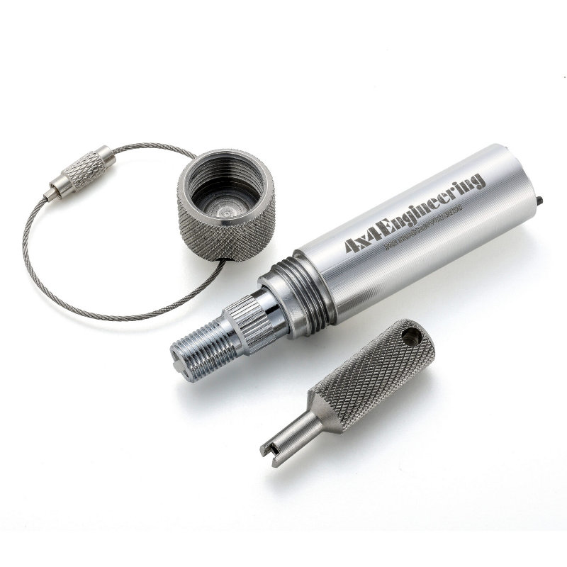 本体、キャップ、ワイヤーキーリング、フラットバルブエクステンション(PVR216EXT)、コア回しツール