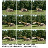前面フラップが2段階に広がって、多彩なアレンジが楽しめるテント。