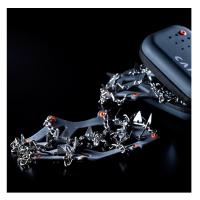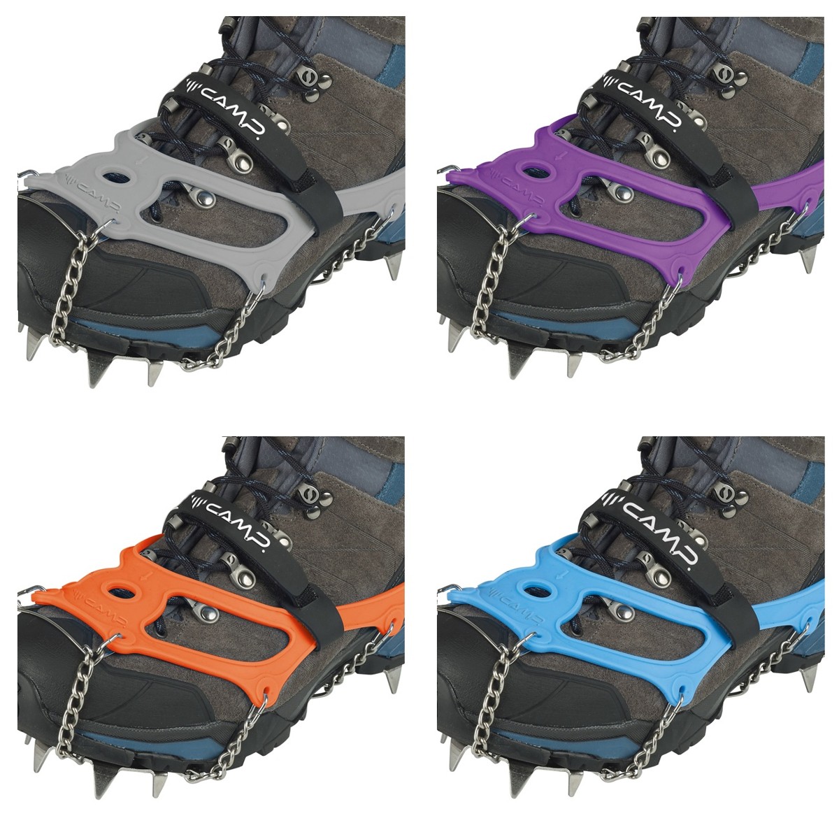 高強度と高耐久のために高品質のステンレス鋼チェーンでリンクされた13個のステンレス鋼スパイクで構成され、最も要求の厳しいユーザー向けに設計されています。エラストマーバインディングシステムは、すばやく簡単に着脱でき、付属のストラップにより靴への取り付けが特に安定します。