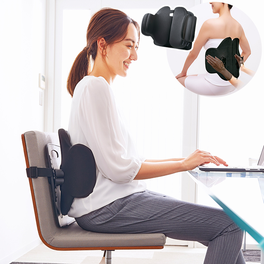 いつもの椅子に取り付け座るだけで、可動式ランバーサポートが腰をぐっと持ち上げ、しっかりホールド☆腰の負担を軽減し、毎日の生活を美姿勢へと導きます。 091216 サントレーム