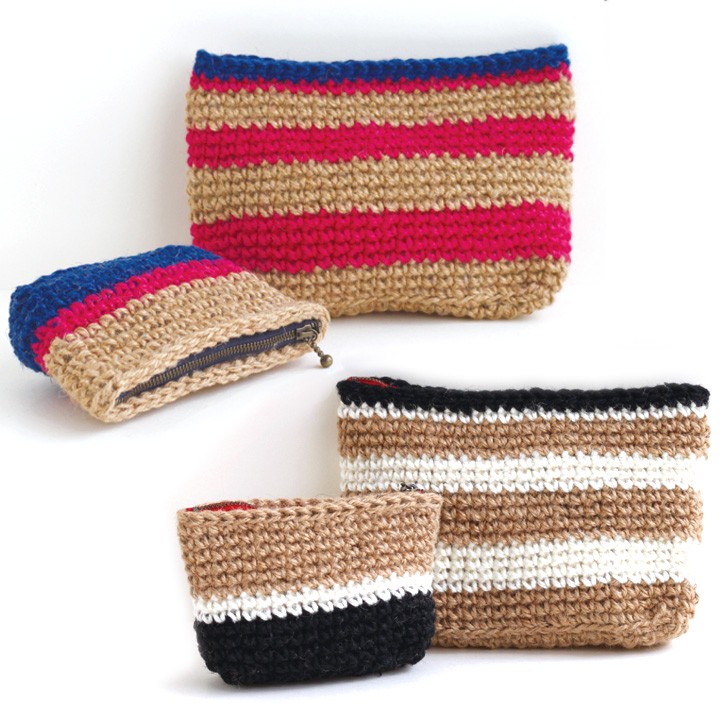 ウイスタークロッシェジュートを使用した夏らしいポーチの編み図です。