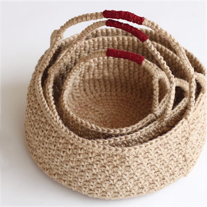 【 使用糸 】 クロッシェジュート<太>ナチュラル9玉(大4玉、中3玉、小2玉)、クロッシェジュート<細>カラー1玉