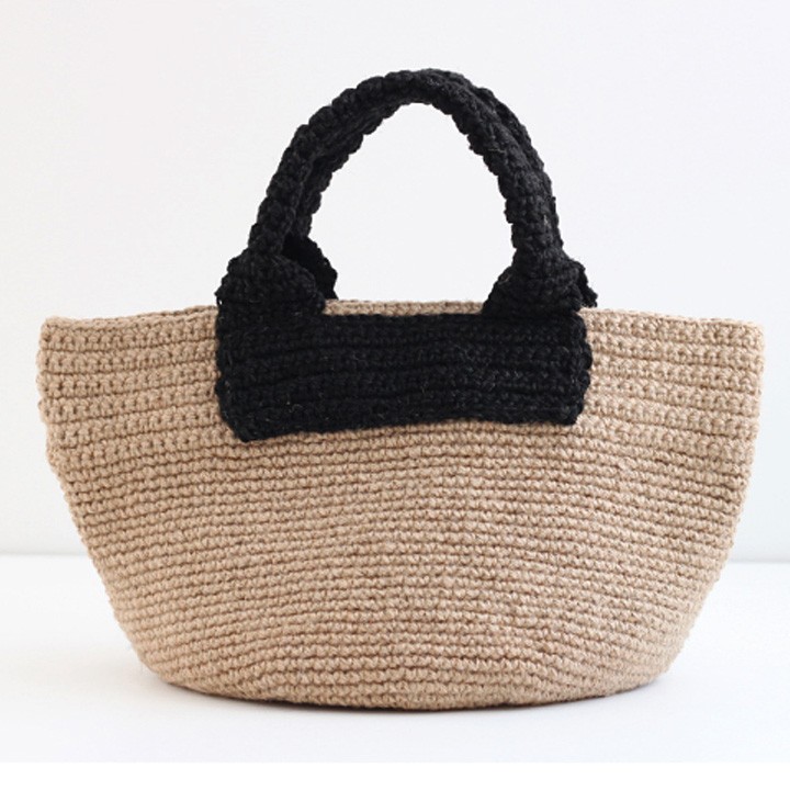 ウイスタークロッシェジュートを使用した落ちついた雰囲気のバッグの編み図です。