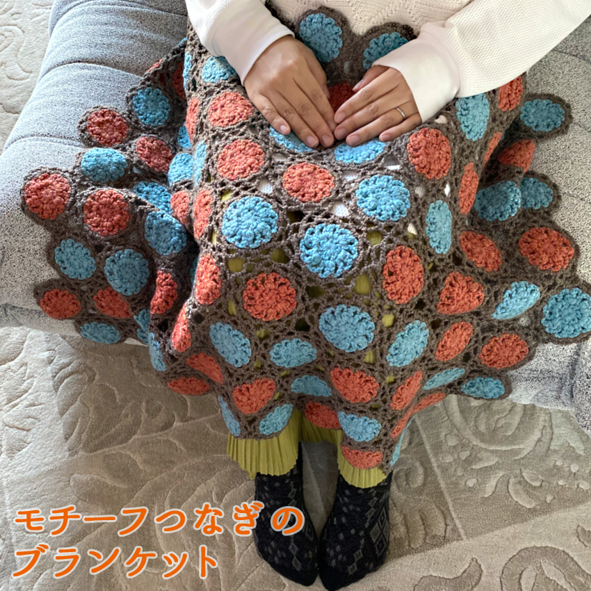 編み図 モチーフつなぎのブランケット H21-8|ウイスター カラーメランジ ひざかけ 作り図 かぎ針編み 編み図 レシピ 藤久 トーカイ