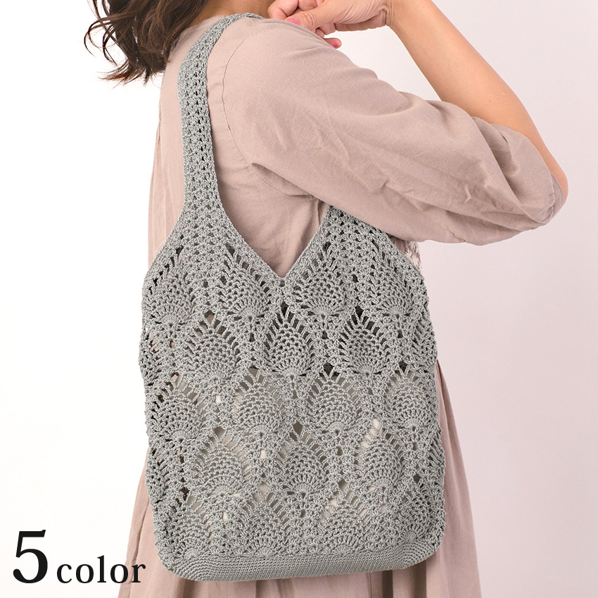 パイナップル模様の5玉バッグ|ハマナカ材料パック ウオッシュコットンクロッシェ キット bag あみもの