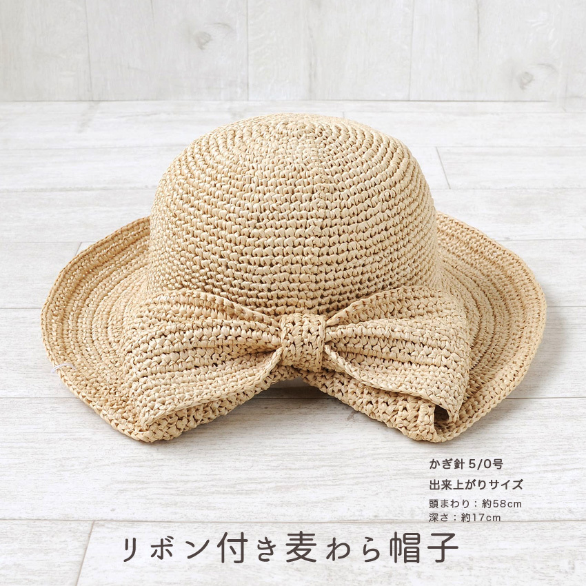 【ハマナカエコアンダリヤと同時購入で1円】ニットレシピ リボン付き麦わら帽子 H167-225-207|編み図 あみもの ニット レシピ 作り図
