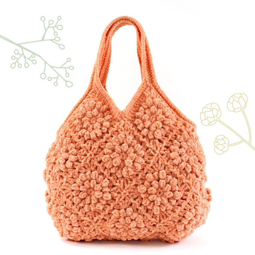 あみぐるみが編みたくなる糸で編むかわいいグラニーバッグの編み図です。