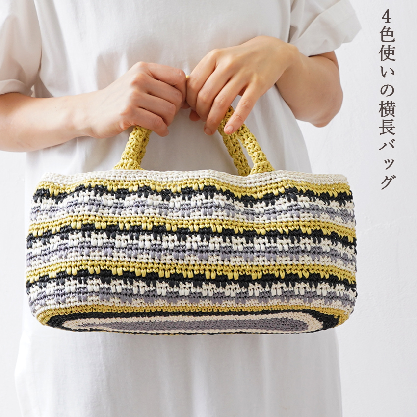 4色のペーパーヤーンで編む夏にぴったりの横長バッグのキット!