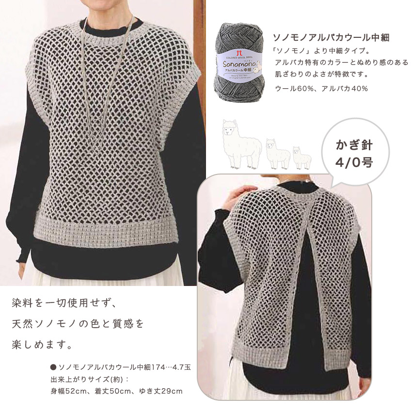 【ハマナカ毛糸と同時購入で1円】ニットレシピ 後ろスリットのネット編み5玉ベスト H145-230-005|編み図 ハマナカ ソノモノ アルパカウール