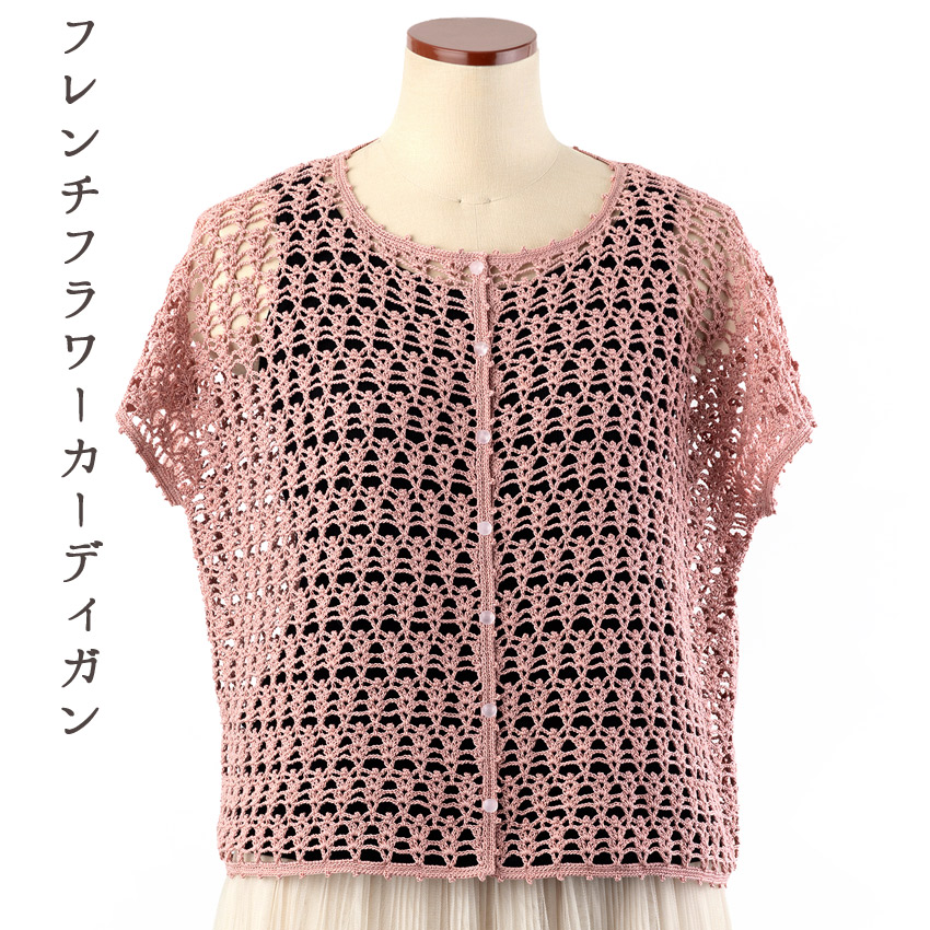 【エミーグランデと同時購入で1円】ニットレシピ フレンチフラワーカーディガン 24-3|編み図 作り図 レシピ 手編み レース糸 オリムパス