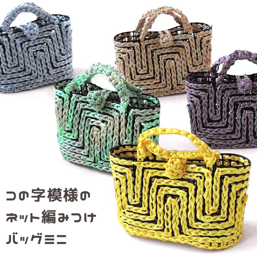 【ハマナカ毛糸と同時購入で1円】ニットレシピ コの字模様のネット編みつけバッグミニ H167-198-309C|編み図 作り図