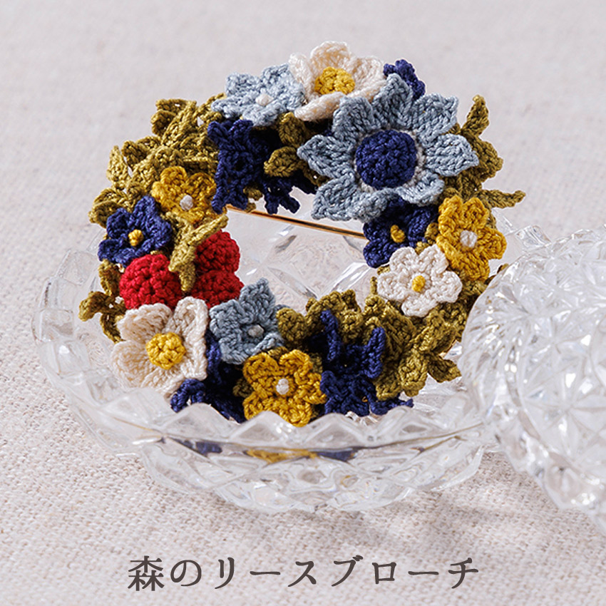【オリムパスレース糸と同時購入で1円】ニットレシピ 森のリースブローチ 24-13