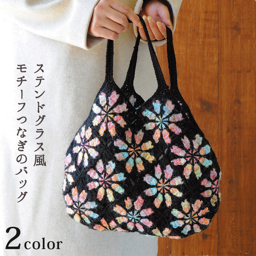 ステンドグラス風モチーフバッグ|ハマナカ キット 手編み あみもの ニット レシピ