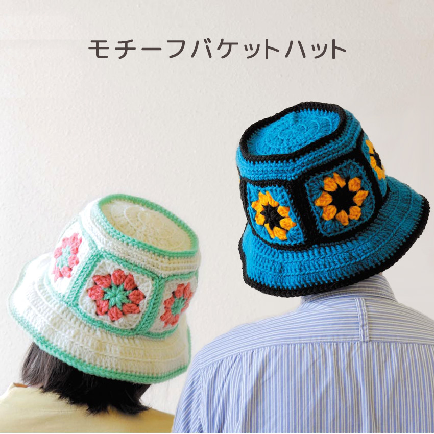 【ハマナカ毛糸と同時購入で1円】ニットレシピ モチーフバケットハット AFC-4|編み図 作り図 ハマナカボニー