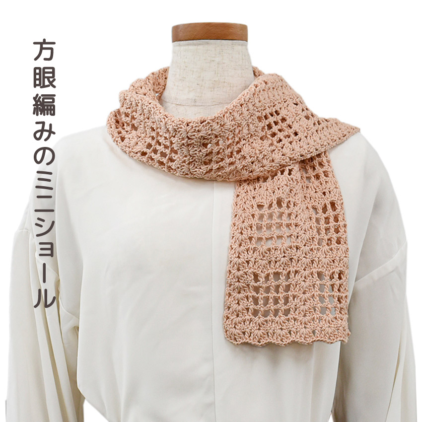 【コットンラスタまたはコットンラスタプリントと同時購入で1円】ニットレシピ 方眼編みのミニショール 2401-1204-S|編み図